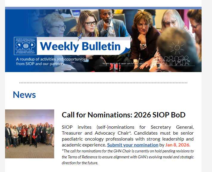 - Publications et tables rondes sur les initiatives du GFAOP, de la SIOP Africa et de la SIOP PODC (Paediatric Oncology in Developing Countries).